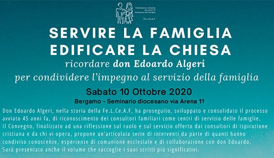 La Felceaf promuove il Convegno “Servire la Famiglia, edificare la Chiesa” per ricordare don Edoardo Algeri, per condividere l’impegno al servizio della famiglia, che si terrà: sabato 10 ottobre 2020 presso il Seminario diocesano di Bergamo.